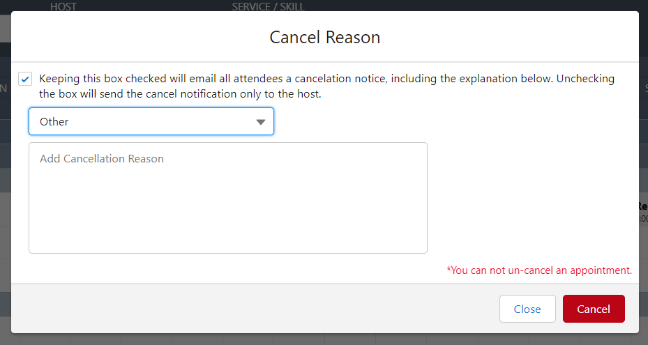 Yes, the “Cancel Reason” popup appears anytime you cancel an Appointment or Event/Course.