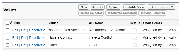 Go to the Values Section and click New, Edit, or Deactivate Values