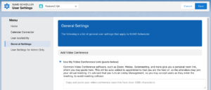 If you have a Zoom account and would prefer SUMO to automatically generate a Zoom meeting and insert the Video Conference Link and details into the appointment, then read: