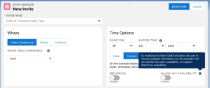 Another example, would be if you need 15 mins to prep for a meeting, you could set Buffer Time “pre” to 30 mins… which will block your calendar for 30 mins prior to a specific appointment.