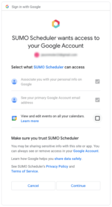 You will be asked to authorize SUMO Scheduler to manage meetings on behalf of Zoom.