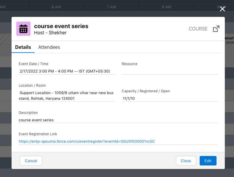 When a SUMO Event is created, these events are visible on the Salesforce Calendar in addition to your Source Calendar. (Calendar connected in SUMO User Settings)