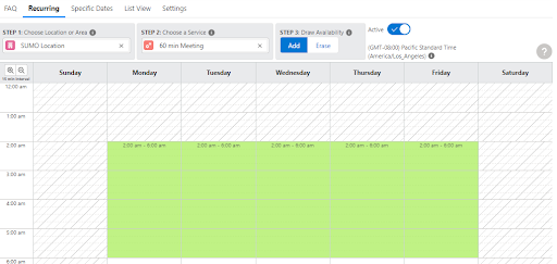 Your availability is typically equivalent to your working hours. You simply need to tell SUMO when you are available to host appointments or events, such as Monday through Friday 8am to 5pm.