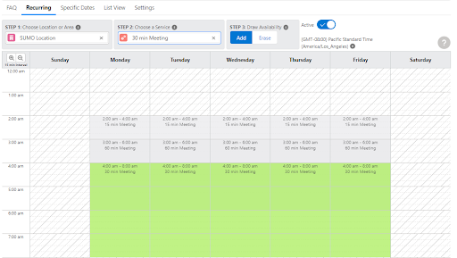 Global Buffer Times: The SUMO Administrator can set global pre and post buffer times to be applied to all appointments scheduled with SUMO.