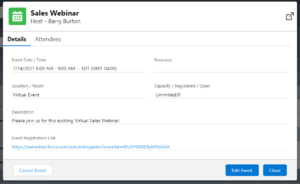 Each event has it’s own Event Link, which can be published on your website, customer community, mass emailed, etc.